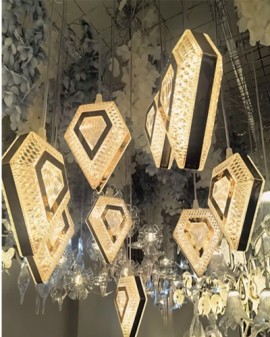 Đèn thả kim cương là mẫu đèn trang trí hiện đại với thiết kế hình khối kim cương độc đáo. Ánh sáng vàng ấm áp kết hợp với kiểu dáng sang trọng giúp không gian trở nên lung linh và nổi bật hơn bao giờ hết.